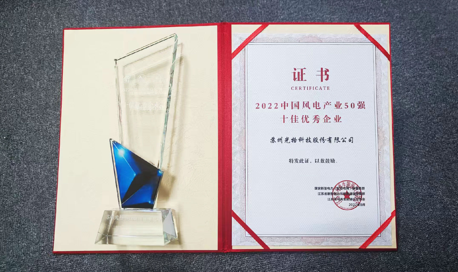根據(jù)大會公布的“2022中國風(fēng)電產(chǎn)業(yè)50強”評選結(jié)果,蘇州光格科技股份有限公司獲評“2022中國風(fēng)電產(chǎn)業(yè)50強十佳優(yōu)秀企業(yè)”。