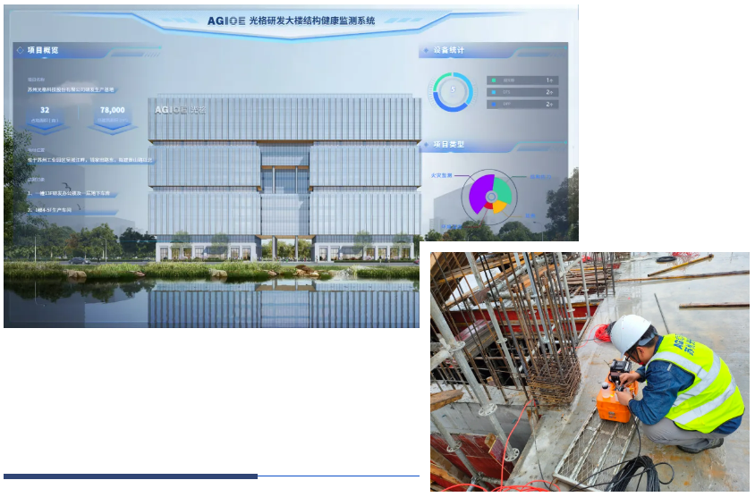 尤其值得一提的是,該總部大樓建設(shè)過(guò)程中,采用了光格科技自主研發(fā)的前沿分布式光纖傳感技術(shù),實(shí)現(xiàn)了從樁基到主體工程建設(shè)過(guò)程的全生命周期結(jié)構(gòu)健康監(jiān)測(cè)(SHM)。這一技術(shù)為大樓注入了生命,賦予了它“生命感知”的能力。
