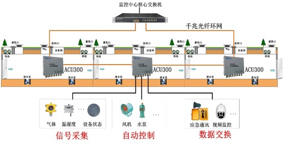 針對綜合管廊/電纜隧道等地下構筑物潮濕、電磁干擾強、污穢嚴重的惡劣場合,光格于2013年推出集成式ACU。其充分利用了大規模集成電路模塊、SoC片上系統等當前最先進的電子技術,將PLC、交換機、電源等設備的采集、控制、通信等接口集成為一體,減少中間連接線,提高可靠性,并減小其體積。經過多年的現場實踐,結合現場環境的實際需求,光格于2016年又推出了新一代高集成高防護的ACU300系列區域控制單元。