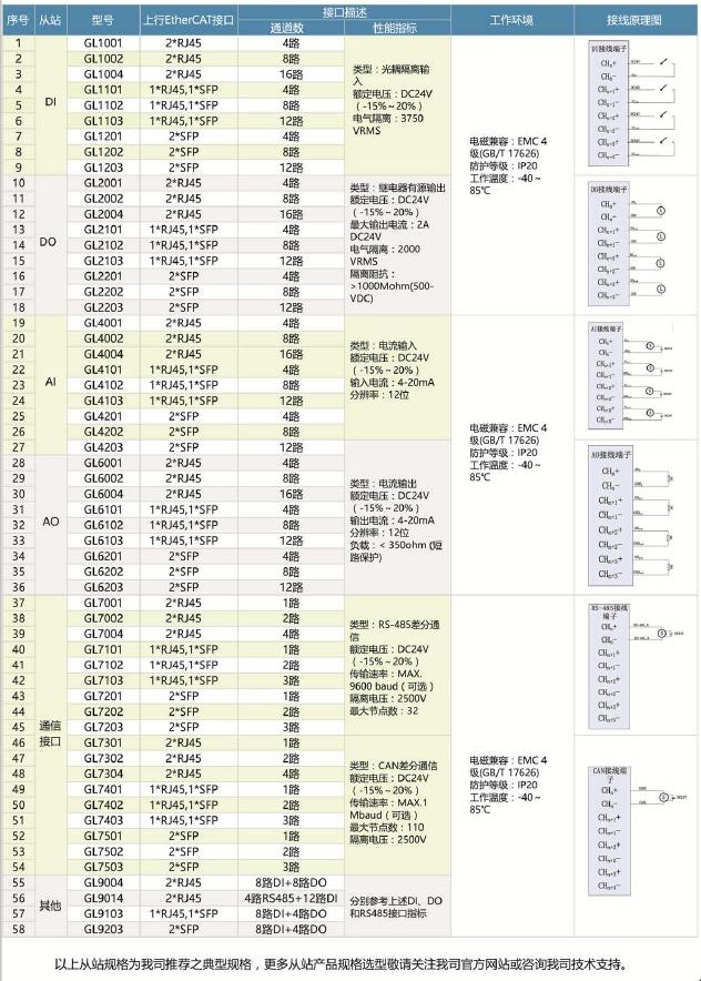 1、以上從站規(guī)格為我司推薦之典型規(guī)格,更多從站產(chǎn)品規(guī)格選型詳見“柔性從站選型”