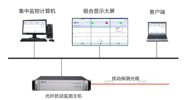 AV500系列光纖式振動入侵監測產品,利用光纖中傳輸的背向瑞利散射光的相位、強度等參數的變化獲得外部擾動事件的相關信息,并根據入射光與探測光的時間延遲確定擾動位置,從而實現了長距離的分布式擾動監測與報警。