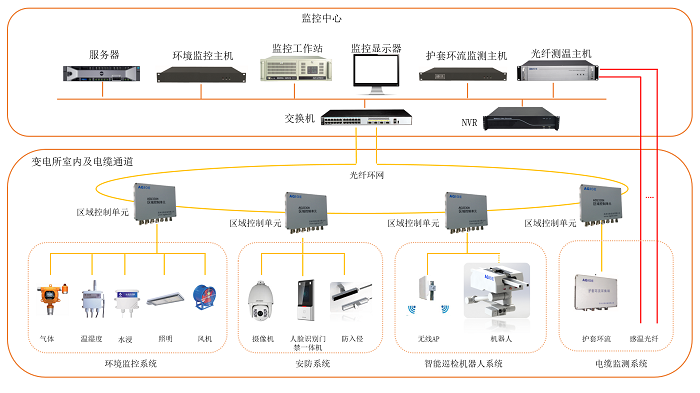 光格鐵路、地鐵變電所綜合監(jiān)控系統(tǒng)主要由環(huán)境監(jiān)控系統(tǒng)、視頻監(jiān)控系統(tǒng)、門禁系統(tǒng)、防入侵系統(tǒng)、分布式光纖測溫系統(tǒng)、護套環(huán)流監(jiān)測系統(tǒng)和智能巡檢機器人系統(tǒng)組成。針對鐵路、地鐵變電所內(nèi)設(shè)備和環(huán)境進行實時在線監(jiān)測,系統(tǒng)具備智能聯(lián)動功能,實現(xiàn)風(fēng)機、水泵、機器人等智能聯(lián)控,及時消除隱患,保障變電所資產(chǎn)和運維人員安全。基于輔助決策分析、機器人復(fù)核,可有效提升運維質(zhì)量和效率。